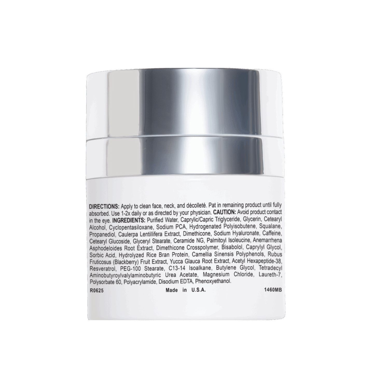 Purified Water, Caprylic/Capric Triglyceride, Glycerin, Cetearyl Alcohol, Cyclopentasiloxane, Sodium PCA, Hydrogenated Polyisobutene, Squalane, Propanediol, Caulerpa Lentillifera Extract, Dimethicone, Sodium Hyaluronate, Caffeine, Cetearyl Glucoside, Glyceryl Stearate, Ceramide NG, Palmitoyl Isoleucine, Anemarrhena Asphodeloides Root Extract, Dimethicone Crosspolymer, Bisabolol, Caprylyl Glycol, Sorbic Acid, Hydrolyzed Rice Bran Protein, Camellia Sinensis Polyphenols, Rubus Fruticosus (Blackberry) Fruit Extract, Yucca Glauca Root Extract, Acetyl Hexapeptide-38, Resveratrol, PEG-100 Stearate, C13-14 Isoalkane, Butylene Glycol, Tetradecyl Aminobutyroylvalylaminobutyric Urea Acetate, Magnesium Chloride, Laureth-7, Polysorbate 60, Polyacrylamide, Disodium EDTA, Phenoxyethanol.